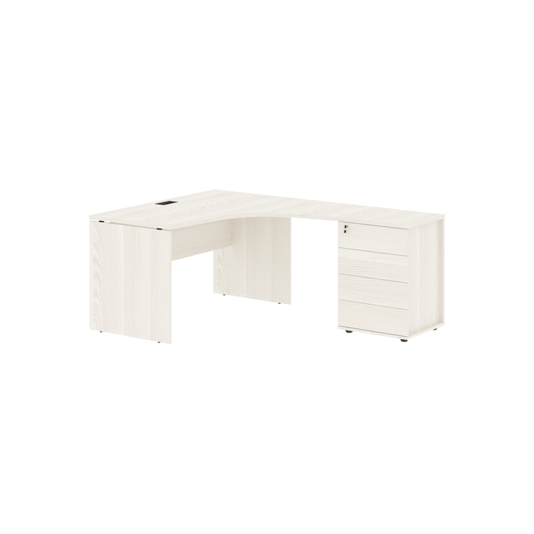Столешница стола из ЛДСП т.25 мм с кромками ПВХ по периметру т.2 мм. Комплектуется металлическим кабель-каналом габаритом 160х80х25 мм. Опоры из ЛДСП т.18 мм с регулируемыми опорами внизу.