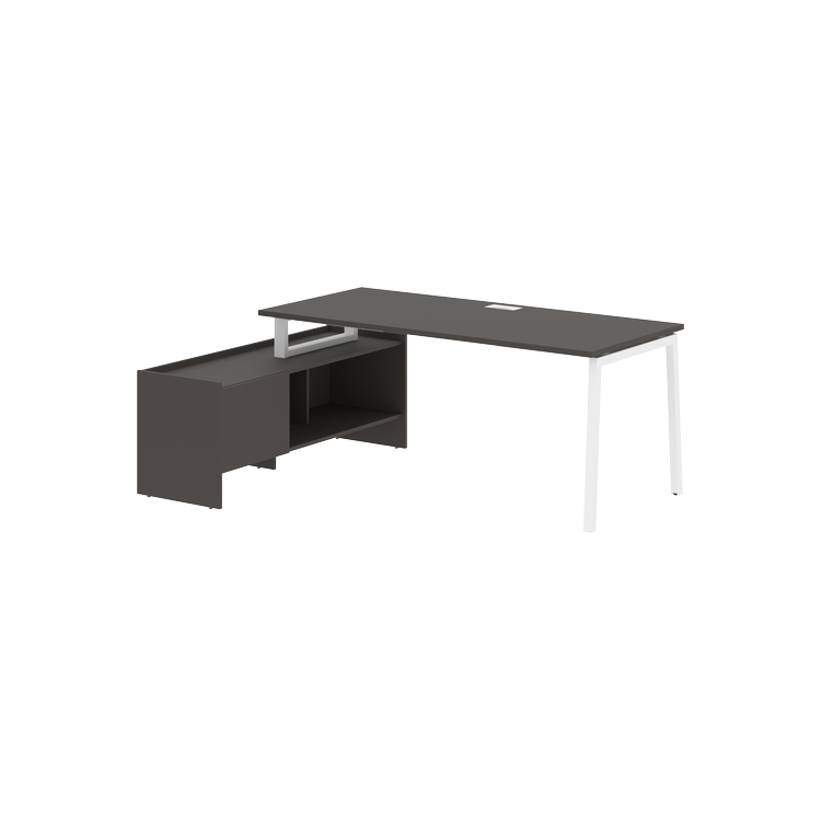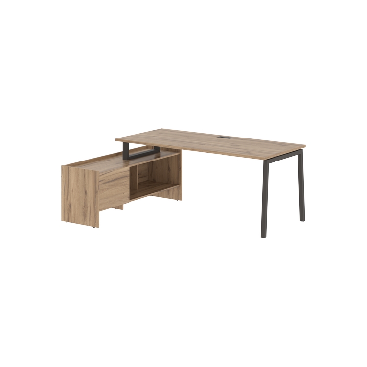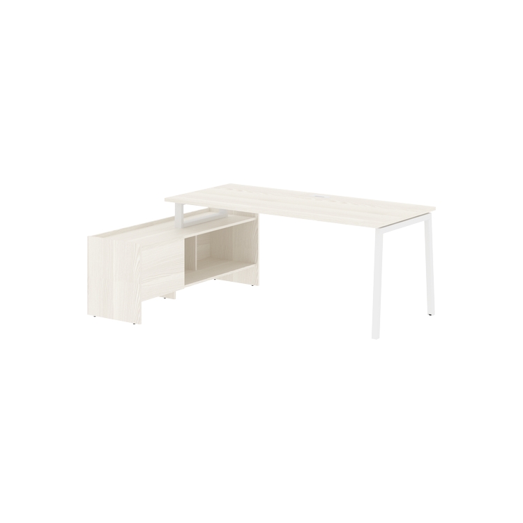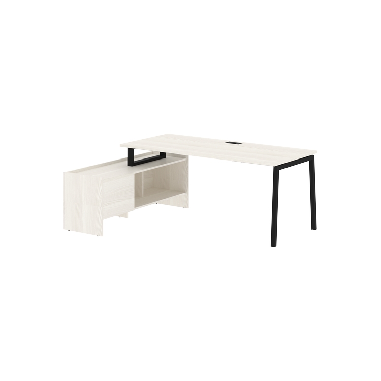 Столешница глубиной 800 мм из ЛДСП т.25 мм с кромками ПВХ по периметру т.2 мм. Комплектуется металлическим кабель-каналом габаритом 160х80х25 мм.